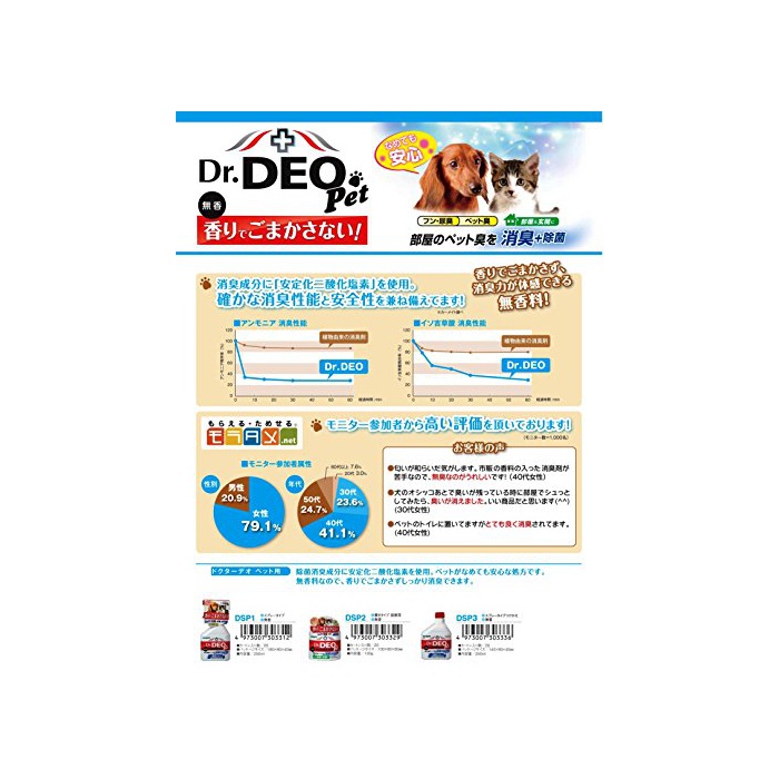●제균소취 성분에 안정화2산화 염소를 사용.애완동물이이 담아도 안심인 처방입니다●무향료이기 때문에,향기에 속이지 않아 확실히 소취에 옵니다