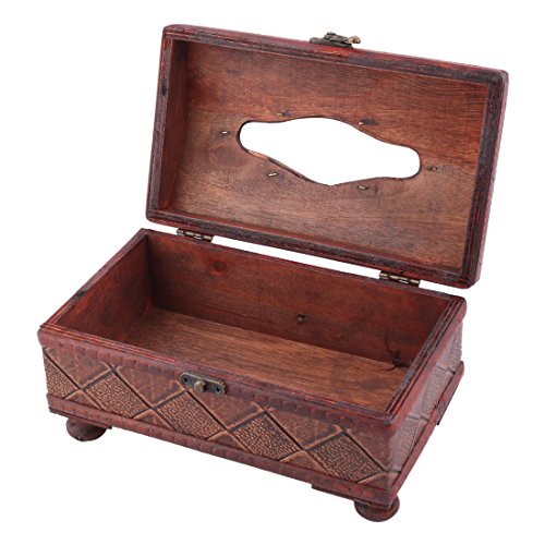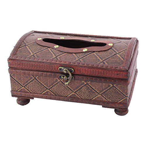 uxcell Wood Plaid Pattern Home Living Room Tissue Napkin Box Holder Organizer Brown