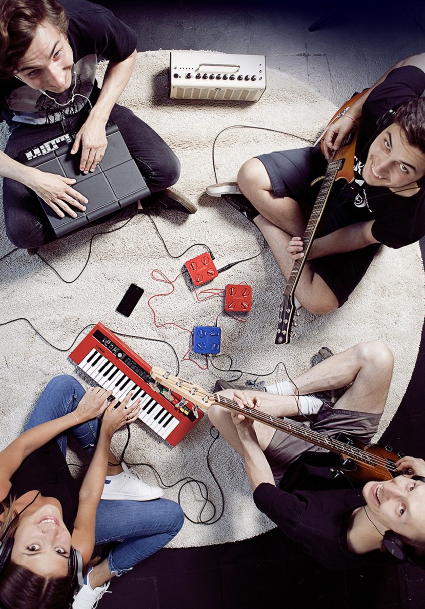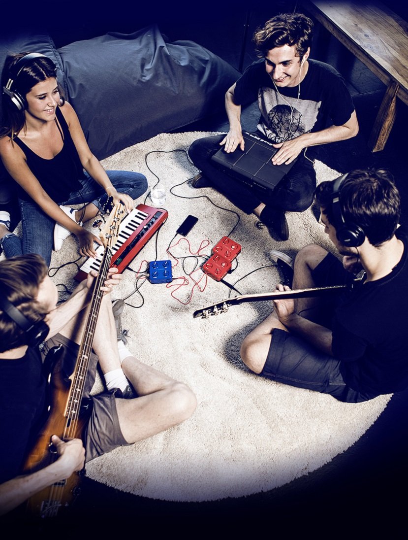 Connecting multiple "SessionCake" shares each performance sound with everyone, you can monitor with headphones and enjoy sessions.