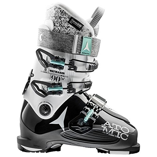 Studio : Atomic Publisher : Atomic Binding : Misc. Product Description The Waymaker 90 from Atomic is a perfect ski boot for ladies who have a medium to wide forefoot and medium sized leg shape. The Silver Liner has 3m Thinsulate Insulation that keeps you extra warm when you are out on the mountain on cold days. Atomic's Free/Lock System unlocks the upper cuff from the lower shell that makes walking to the gondola much easier in the morning. The Waymaker shell uses a single Live Fit Panel on the outside of the foot that stretches out once you set your foot inside the boot for a comfortable and supportive fit. Actual Flex: 90, Cuff Alignment: Single, Warranty: One Year, Ski Boot Width: Medium (100-103mm), Flex: Stiff, Used: No, Ski/Walk: Yes, Forefoot Width: 101mm, Flex Adjustment: No, Buckle Count: 3, Category: Downhill, Ski Gear Intended Use: All Mountain, Instep Height: High, Calf Volume: Medium, Skill Range: Advanced Intermediate - Expert, Model Year: 2017, Product ID: 471515, Model Number: AE501500023X, GTIN: 0887445097907 0