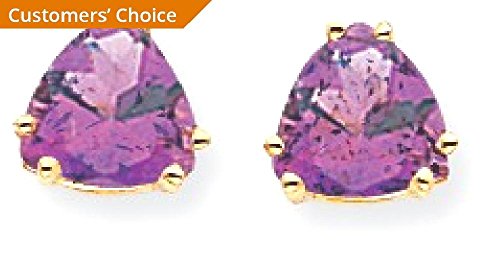 ICECARATS DESIGNER JEWELRY 14K YELLOW GOLD 7MM TRILLION PURPLE AMETHYST POST STUD BALL BUTTON STUD EARRINGS