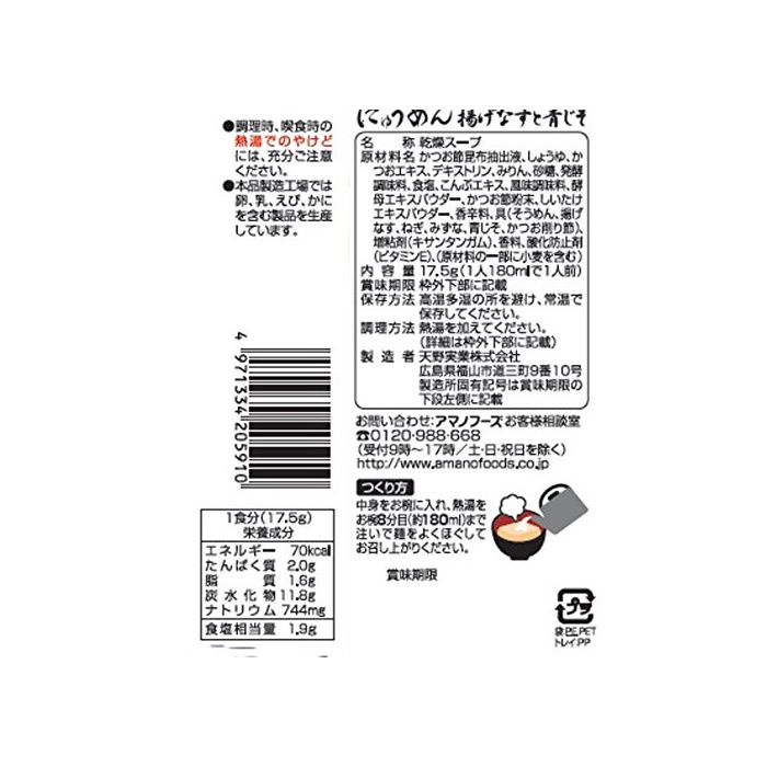 원본상품명: アマノ にゅうめん 揚げなすと?じそ(だし?油仕立て) 17.5g×4個
