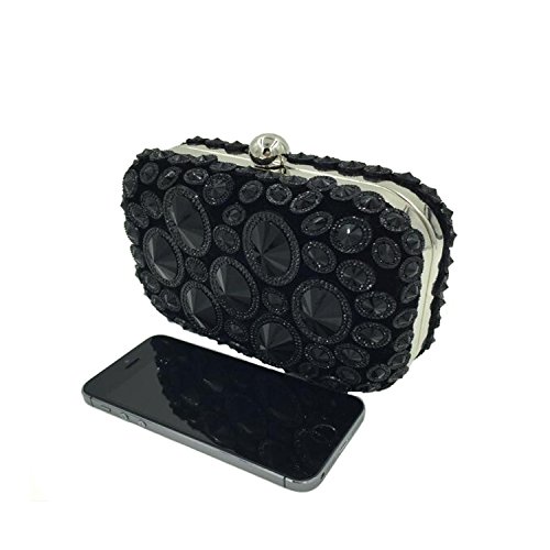 Product Description This elegant evening bag is great for cocktail party or classy event. Material: Inner: Polyester; Outer: Acrylic ,metal and rhinestones Type: Evening bags Dimension:6.89" x 2.36" x 4.33"(L x W x H) Weight:1.3 pounds - It can be used as a clutch or as a purse as. -Fully beaded rhinestones with metal hardware trim, The interior is lined with satin material -Elegant and sophisticated evening clutch bag with both sides featuring dazzling bezel set round crystals. -A large internal space ,you can easily put perfume ,keys ,cell phone and other item, Removable hidden-clasp chain for your choice to take it in hand or on the shoulder -I like it for going to plays, opera, or to the philharmonic when I want to be especially dressy .It is roomy inside and makes for a lovely bag to take out in the evening. -It looks expensive, classy and cute. What's more, it is large enough to fit the essentials.. You'll earn the compliments as well as appreciation. Please allow 0.4-1.2inch error And there may be a little color difference due to different computer display. About The Retrun Policy: As a honest Amazon seller we offer convenient after-sales service: If you receive broken or damaged item ,just contact us with a picture about the stuff you received ,we will offer refund or resend in 24 hours. If you do not like it, we can offer return, or other solutions If for other reasons, do not hesitate to contact us, we will try our best to solve your problem. 0