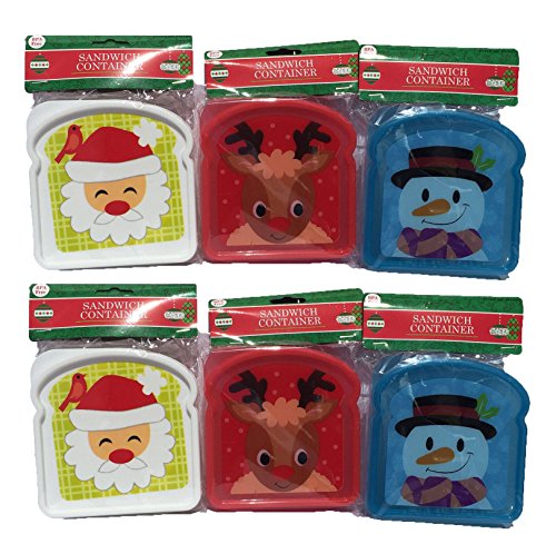 Set of 6 Sandwich Container Christmas Reindeer/Santa/Snowman Decal