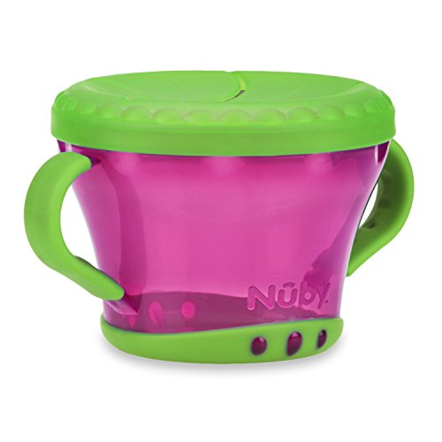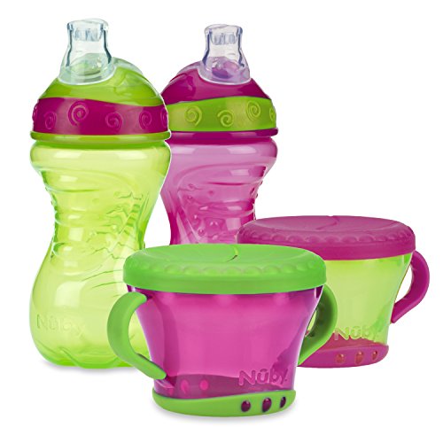 -. Title : Nuby 4 Piece No-Spill Snack Set, Pink/Green
