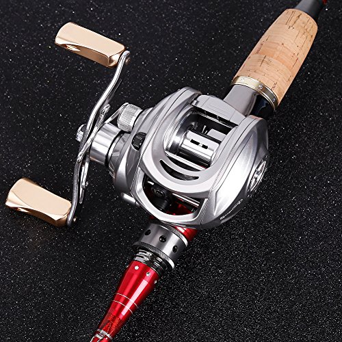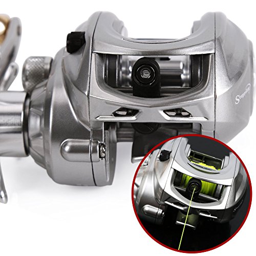 -. Binding : Misc. -. Brand : Sougayilang -. Feature : UNMATCHED -Sougayilang Magnetic Tuned brake delivering 12 lbs/120yards of drag offer the ultimate in a high performance of baitcasting fishing reel. / SMOOTH-CNC machined aluminum spool, High-tensile gear, aluminum high speed 7.0:1 gear ratio, superior shielded 9+1 corrosion resistant ball bearings. / ACCURATE - Magnetic Brake System gives consistent brake pressure throughout the cast. has a adjustable button on the reel surface.magnetic force from 1-10. / PERFORMANCE - Low profile design with low noise gear structure delivers the ultimate performance.better Stability, reduce the birds nest.suitable for novice and skilled. / LIGHT AND STRONG - Silver color anodized CNC Machined aluminum forged spool offers maximum strength while reducing weight.Stain steel gold handle makes stronger for fighting with fishes. -. IsAutographed : 0 -. IsMemorabilia : 0 -. Label : Sougayilang -. Manufacturer : Sougayilang -. ProductGroup : Sports -. ProductTypeName : SPORTING_GOODS -. Publisher : Sougayilang -. Studio : Sougayilang -. Title : Sougayilang Magnetic Tuned Brake Low Profile Baitcasting Fishing Reel Left/right Hand