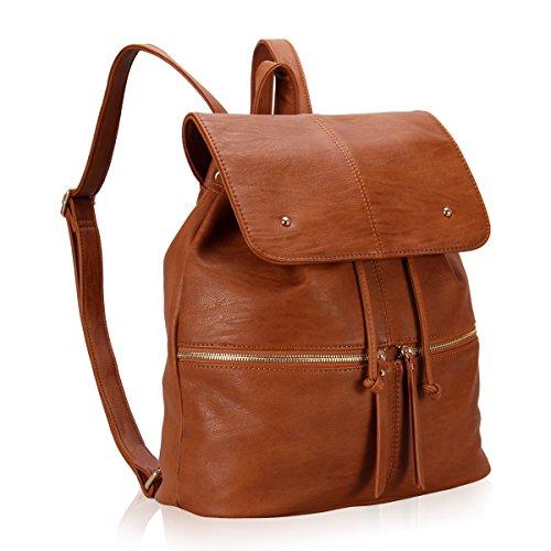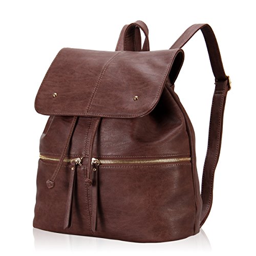 -. Feature : Richly faux leather and a lightly structured silhouette make this backpack handbag a chic everyday choice. / Product Dimensions: 12.2 x 5.1 x 13.8 inches; Weight: 2.2 pounds. / Top flap magnetic snap closure with interior drawstring for extra security. / Exterior: two front zipper pockets large enough to put iphone 6+, or store your keys, money at a convenience. Interior: Besides the large main compartment, there are interior slip pockets, an interior zip pocket. / This gorgeous synthetic leather backpack is perfect for the ladies who want their hands free, when walking around the city.