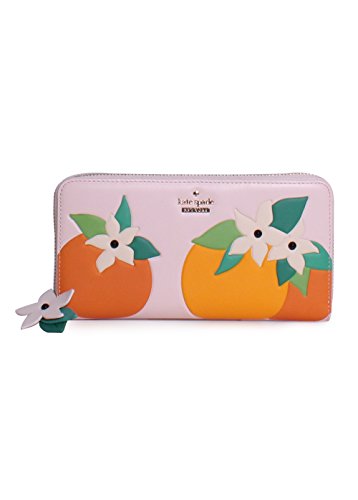 Product Description This classic Kate Spade New York wallet is detailed with a crystal-studded orange motif. Logo lettering and exterior pocket. The wraparound zip opens to the striped interior with a dividing zip pocket, 2 bill slots, and 12 card slots. 0