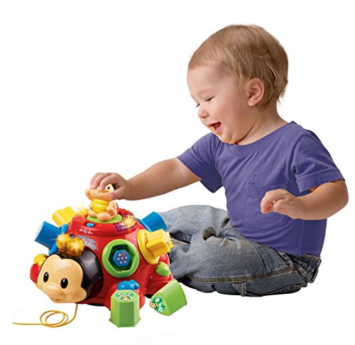 -. Feature : Shape-sorter play pattern with attached shapes that won't get lost / Cute baby bug spins on mommy bug's back / Pull string stores in battery compartment until baby's ready / Features two modes of play / Learning toy teaches shapes, counting and nature objects