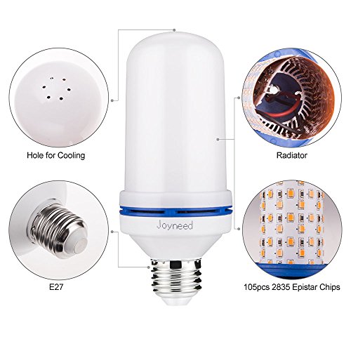 - 4.Widely applications – Joyneed Flame Lamp, suitable for home decoration, bedroom, living room, bars, hotels, outdoor garden, restaurant, cafe, villas, wedding decorations, parties, churches, castles and so on. Especially in some festivals, birthday, Halloween, Christmas day, it will enliven the whole site and bring warmth, enthusiasm and passion. For better flame flickering effect, please install the bulb in a frosted glass shade, lantern, or salt lamp etc.