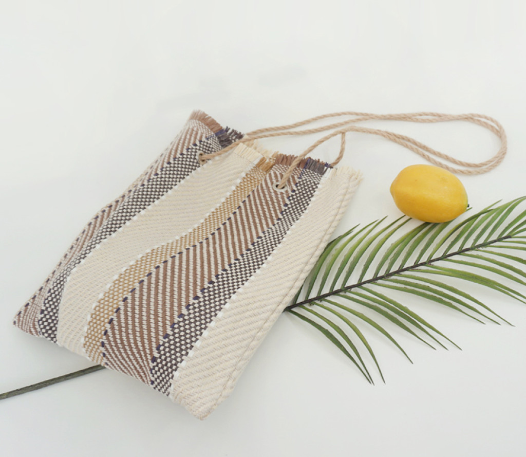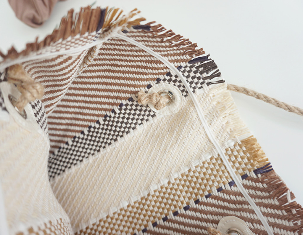 숄더끈은 밀짚소재의 로프로 되어있어