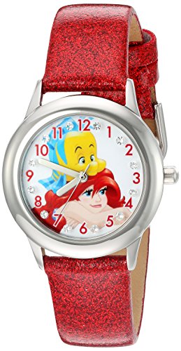 Disney Girl's 'Ariel' Quartz Stainless Steel and Leather Watch, Color:Red (Model: W002917)