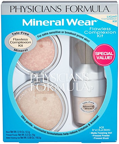 -. Title : Physicians Formula Mineral Wear Flawless Complexion Kit, Light - Pressed Powder: 0.3 Ounce, Matte Finishing Veil: 0.58 Ounce & Pressed Blush: 0.19 Ounce