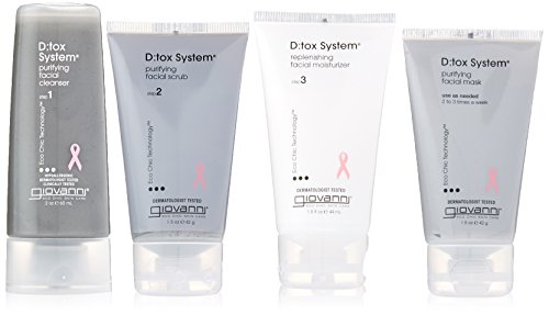-. Binding : Health and Beauty -. Brand : Giovanni -. EAN : 0716237183828 -. Feature : Contains 2 ounce step 1 Purifying Facial Cleanser and 15 ounce step 2 Purifying Facial Scrup / Contains 1.5 ounce step 3 replenishing facial moisturizer and 1.5 ounce purifying facial mask / Keeps your face smooth, silky, youthful and luminous - even on the go / TSA compliant / Bag is reusable -. IsAdultProduct : 0 -. Label : Giovanni -. LegalDisclaimer : Actual product packaging and materials may contain more and different information than what is shown on our website. We recommend that you do not rely solely on the information presented and that you always read labels, warnings, and directions before using or consuming a product. Please see our full disclaimer below. -. Manufacturer : Giovanni -. Model : 18382 -. MPN : 716237183828 -. NumberOfItems : 1 -. PackageQuantity : 1 -. PartNumber : 716237183828 -. ProductGroup : Beauty -. ProductTypeName : BEAUTY -. PublicationDate : 2014-11-09 -. Publisher : Giovanni -. ReleaseDate : 2014-11-14 -. Size : 4 ct -. Studio : Giovanni -. Title : Giovanni D:tox System Facial Flight Attendant First Class Travel Kit -. UPC : 716237183828