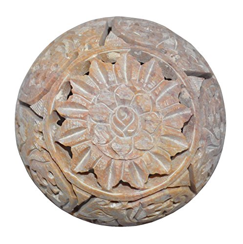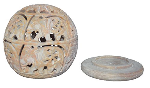 Zap Impex Soapstone Stone Sculpture Votive/Candle/Tealight Holder with Carved Elephant Figurines Decorative Tea Light Lantern (3 Inches)