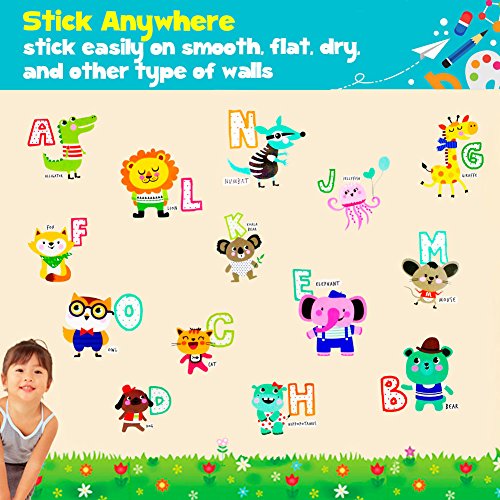-. Title : Cute Wall Sticker | Adorable Reusable Animal Wallpaper Decor with Alphabet Decal Extra Gift Fun Baby Education | Odorless Non-Toxic Self-Adhesive PVC for Bedroom Living Room Playroom Nursery | 1384.1