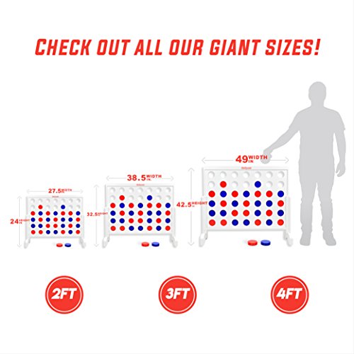 The GoSports giant 4-in-a-row game was developed using premium wood materials to make a giant version of one of America's favorite strategy games. The game can be quickly assembled in seconds and can be played indoors or outdoors. 4-In-a-row is played by players taking turns inserting coins into the 7 slots on the top. A game is won when any one player gets 4 of their color coins in a row (vertically, horizontally or diagonally), so each player must always keep an eye on their opponent's moves to try and block their 4 in a row. Unlike other sets, ours includes a premium padded carrying case which allows for the game to be neatly stored when not in use. Join the fun today and get your own giant 4-in-a-row gameFeature