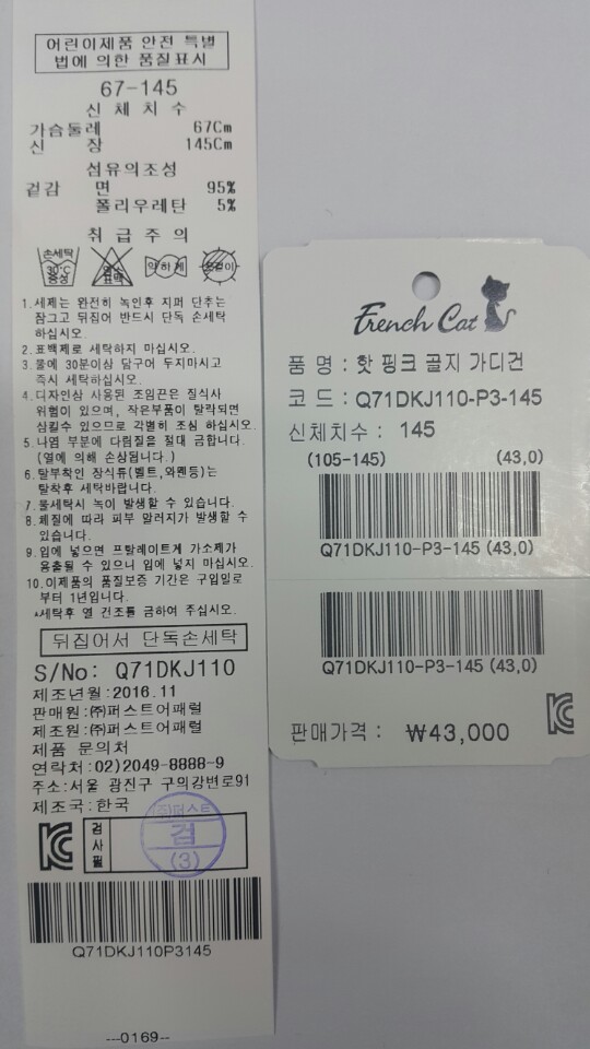 소재:겉감 : 면 95%, 폴리우레탄 5%