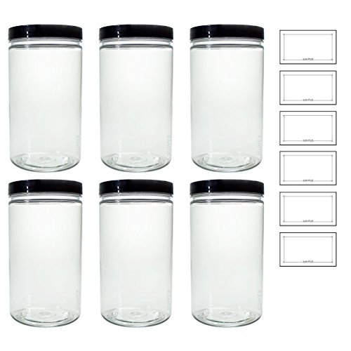 Clear 32 oz PET Plastic (BPA Free) Large Refillable Jar - (6 pack) + Labels