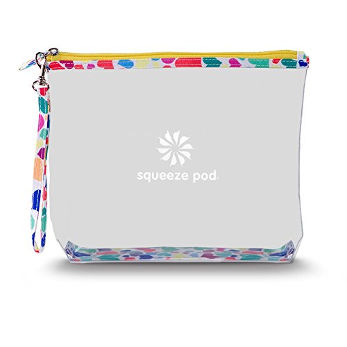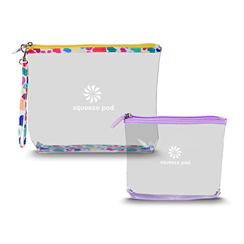 Squeeze Pod Clear Travel Toiletry 2 Bag Bundle - 1 TSA Approved Clear Quart Size Bag w/ Purple Trim + 1 Clear Hanging Bag w/ Heart Trim. Built to Survive Tough Travel. (CTBMSHP)