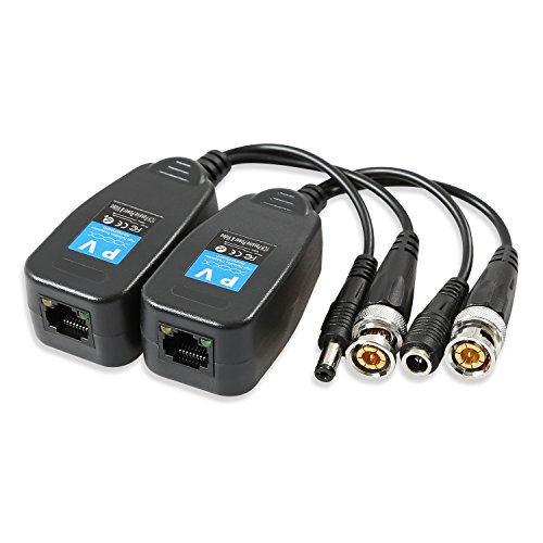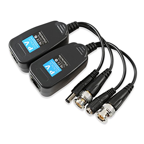 Wsdcam 1 Pair HD-CVI/TVI/AHD Passive Video Balun with Power Connector and RJ45 CAT5 Data Transmitter