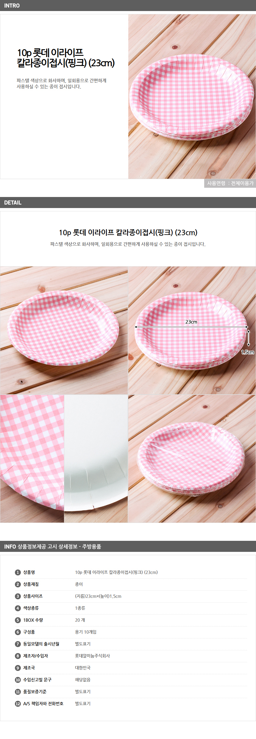 10p Lotte collar paper plate (pink) (23cm)