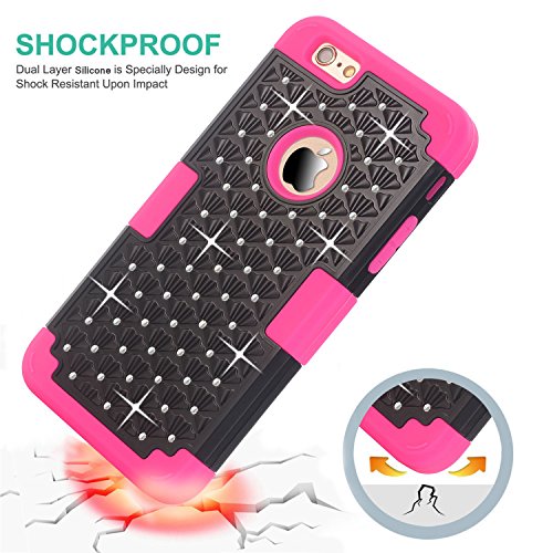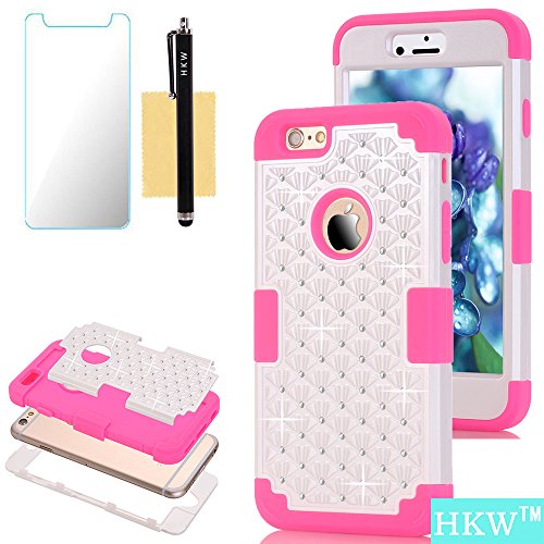 -. Title : iPhone 6 Case,iPhone 6S Case,HKW (TM) Diamond Hybrid 3 IN 1 Armor Combo Defender Shockproof Back Case Protective Cover for Apple iPhone 6,6S 4.7 Inch Case (White/Rose Red) (MA1602)