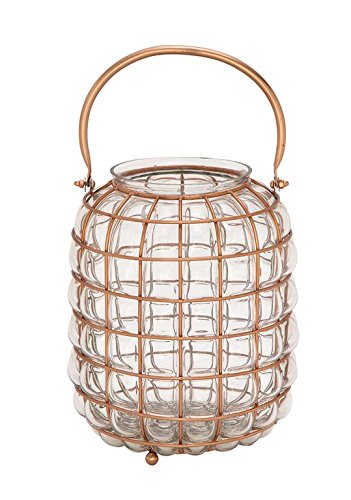 -. Title : Deco 79 49667 Glass & Metal Lantern Copper