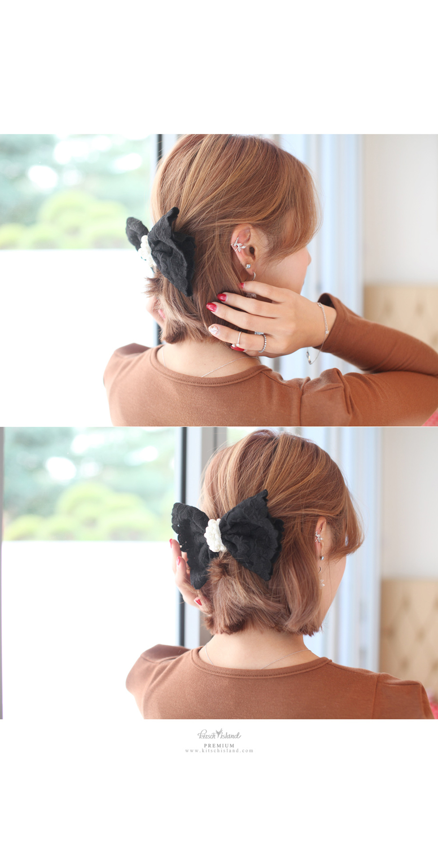 似たようなデザインの製品たちも多数ありますが、もう少しディテールに細かく、ボルドな大きさがそれぞれ他のクリスタルで全体のバランスを合わせたあと、高級感あふれた網斜でブラックのシックさと品のある感じが出るようにし、その後、ボルドなクリスタルに沿って小さいクリスタルと彩色が深いブラックアクリルを網斜にぎっしり一つ一つ埋め合わせた製品です。