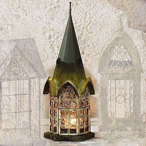 - Windows are made from real glass with intricate lead solder panes
