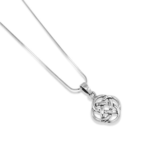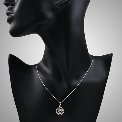 This beautiful Silver celtic necklace would be a lovely addition to any wardrobe. The included black velvet pouch also makes it the perfect gift for someone special. Made from high quality 925 sterling silver. The pendant comes with the 925 sterling silver snake chain 18''.This five-fold celtic pattern represents balance. The four outer circles symbolize the four elements: earth, fire, water, air. The middle circle unites all the elements with a goal to reach balance between all four elements or energies.