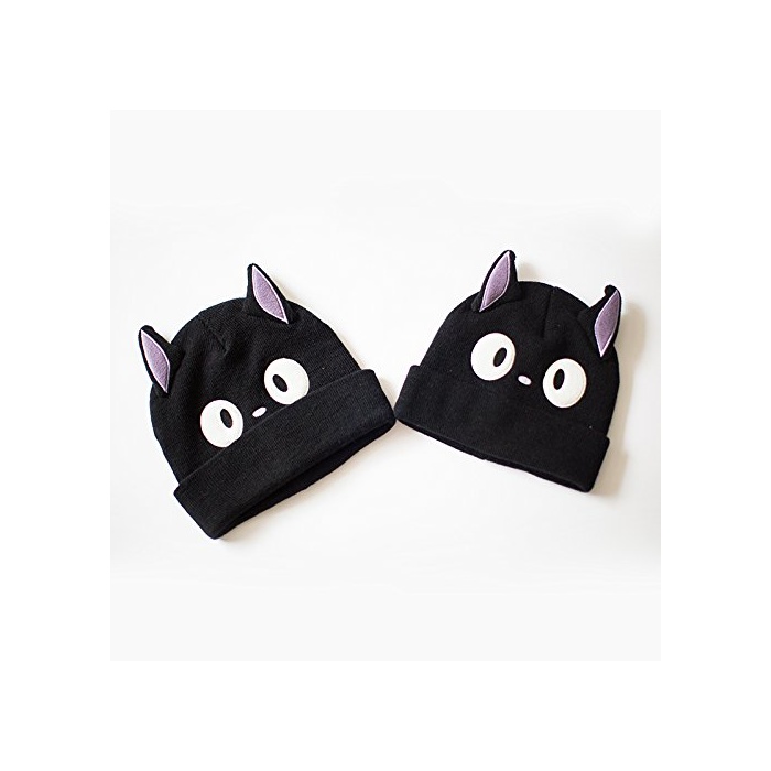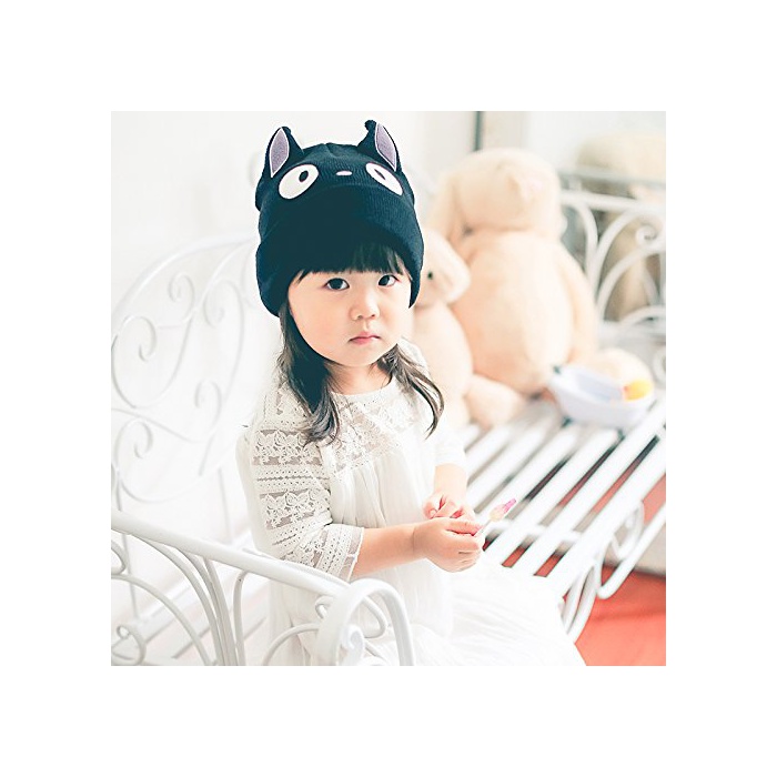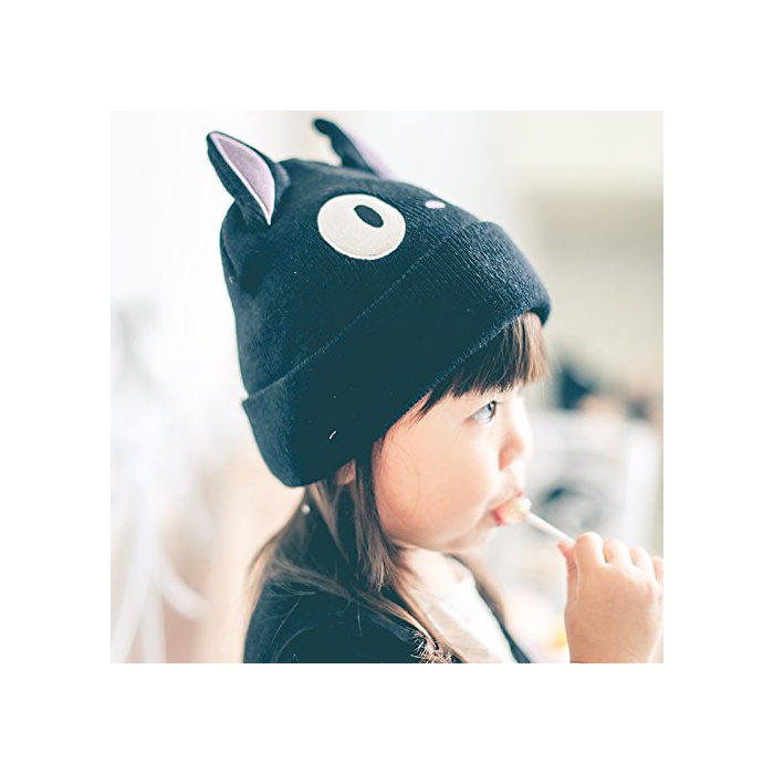 (다 키다)Yokeeyo 니트모 귀여운 이부착 모자 친자 갖춤모 니트 캡 고양이이 묘귀 베이비용 (햇)하트 어른 캡 키즈 검다 모자남아용 소녀 남여아 추동 방한 자수