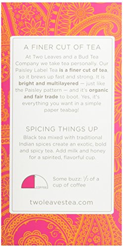 ReleaseDate : 2017-11-02 Studio : Inventory Management Services- HPC Publisher : Inventory Management Services- HPC Binding : Health and Beauty Product Description Paisley Brand Tea from two leaves tea company Organic Chai, 20-tea bags, 1.55-oz., box 0
