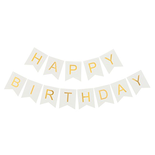 Happy Birthday Banner White & Gold Party Decorations Supplies Ideas (White with Gold)