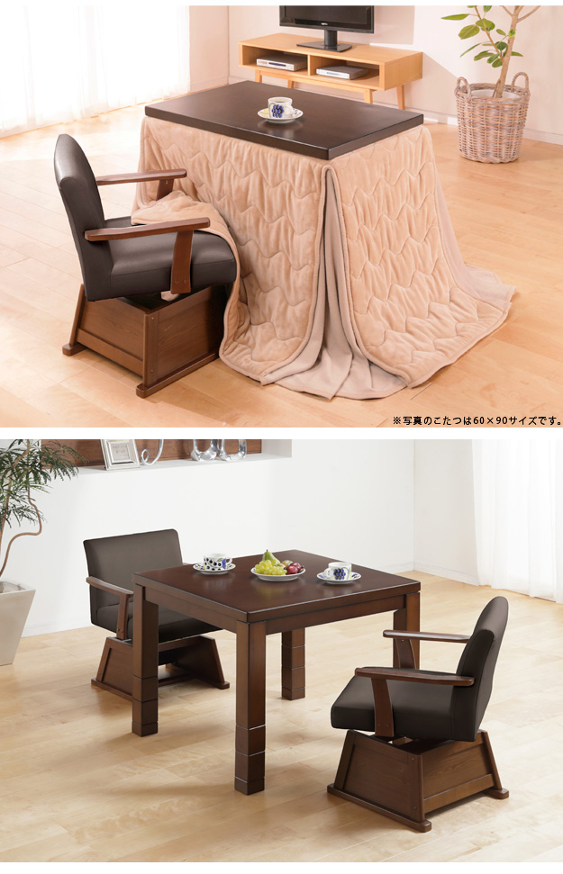 ●セット内容:こたつx1台、こたつ布団x1枚、肘付回転椅子x2脚