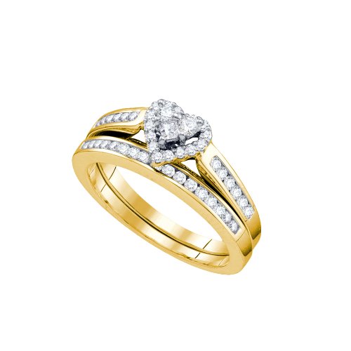 -. Title : 10K White Gold Diamond Ladies Bridal Engagement Ring with Matching Wedding Band Two 2 Ring Set - Halo Heart Shape Center Setting w/ Channel Set P.R.Incess Cut & Round Diamonds - (.55 cttw)