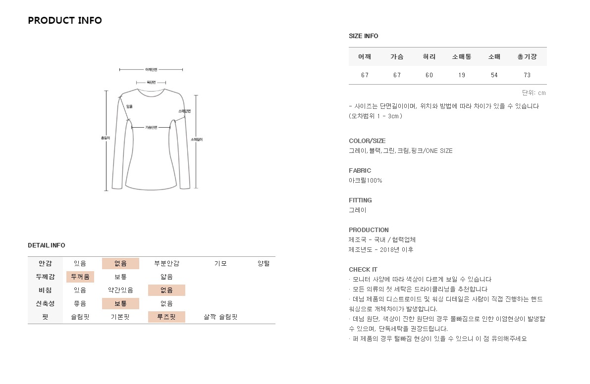 루즈한 실루엣이 사이즈에 구애없이 착용하기 좋답니다
