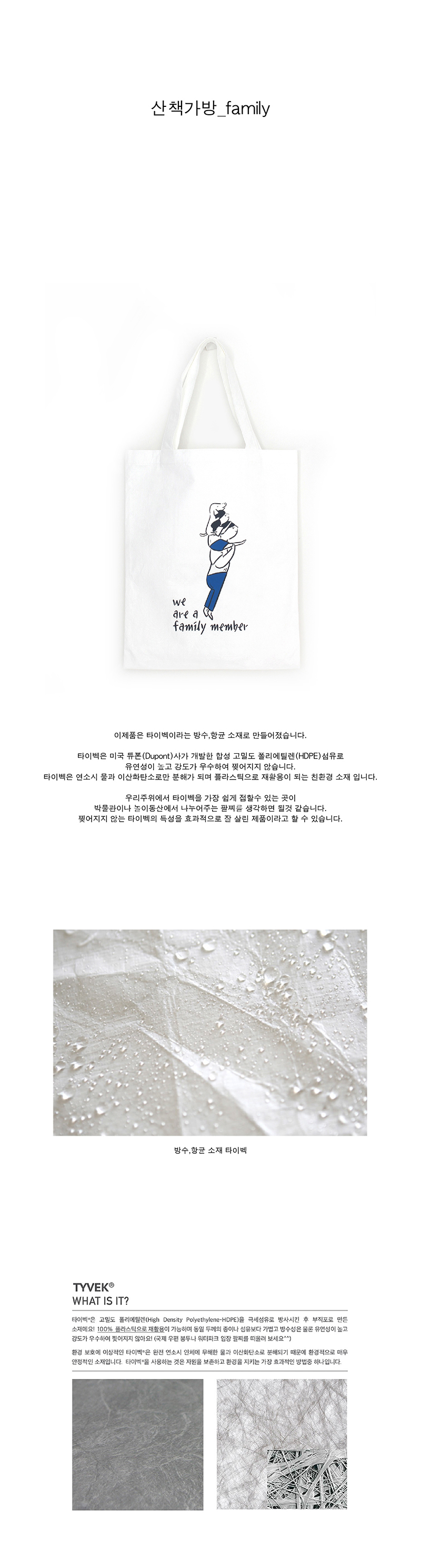 타이벡이라는 방수,항균 소재입니다. 상세페이지를 꼼꼼히 살펴보시고 구매해주시기 바랍니다.