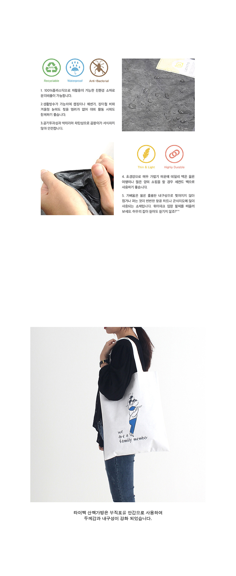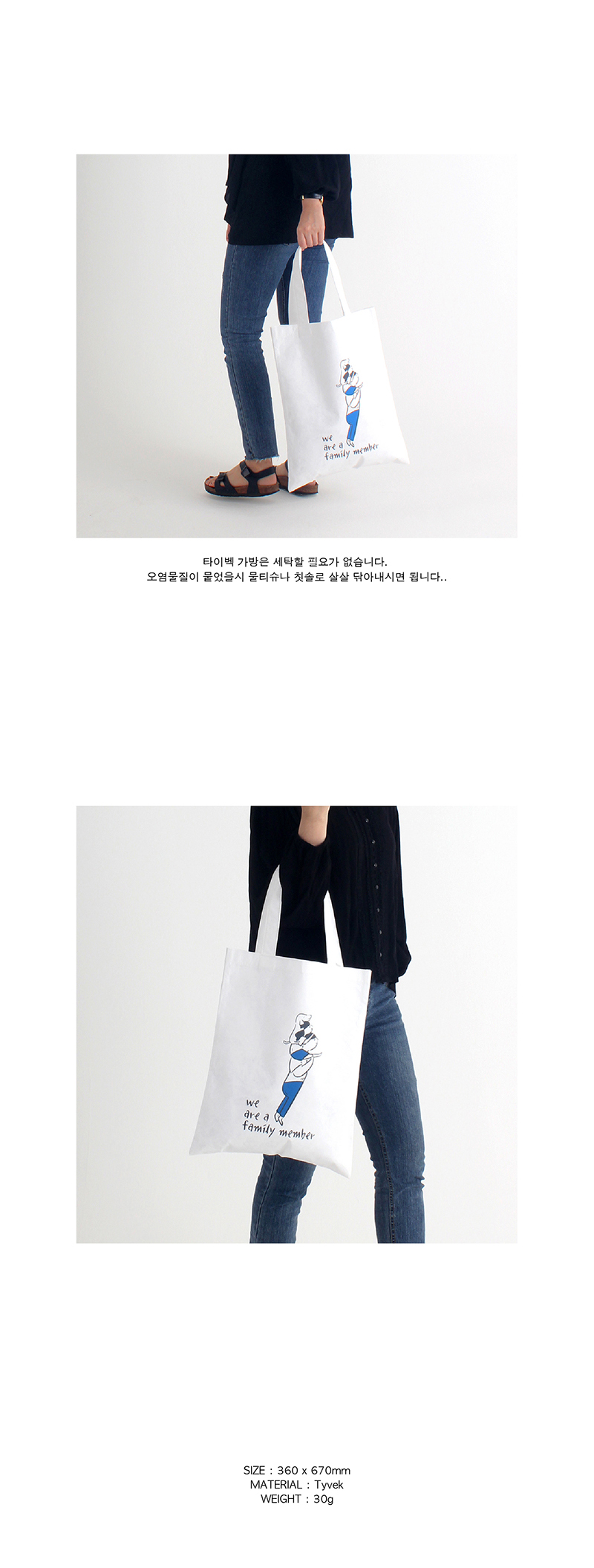 방수,항균 소재인 타이벡으로 제작된 가방입니다.