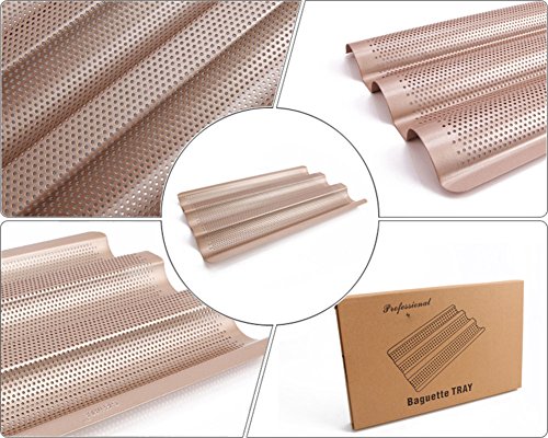 Weight: 612g Dimensions: 10*15 in Packaging material: Color box Package including: 1*french bread pan Material: Carbon steel and non-stick coating