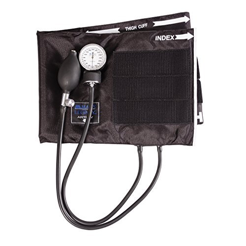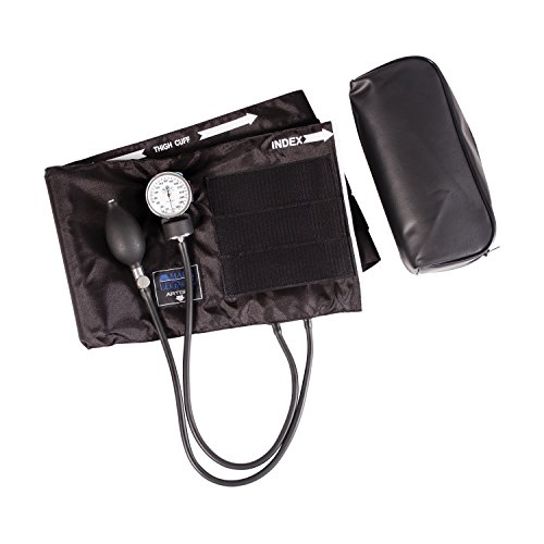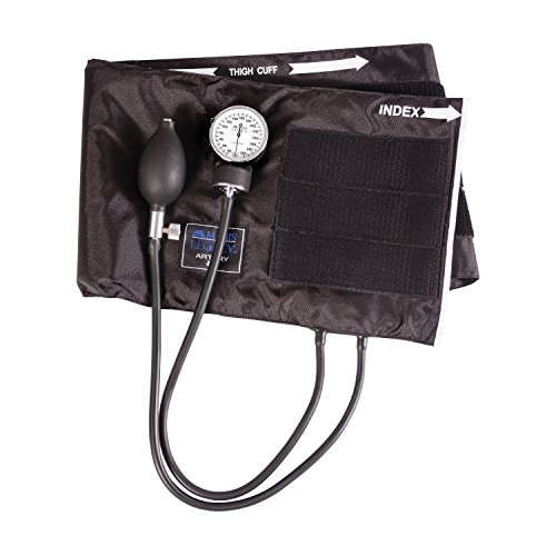 -. Feature : This professional quality MABIS LEGACY Series Aneroid Sphygmomanometer is similar to those used in doctors' offices and hospitals. It comes with all you need to start taking your blood pressure at home without the need for electricity or batteries. Easy! / Superior design. This sphygmomanometer features an easy squeeze inflation bulb that comfortably fits in your hand. The aneroid gauge shows large easy-to-read numbers, perfect for those with poor vision. You will enjoy its manual design to gain accurate results. / Convenient zippered carrying case ensures you will always have this handy blood pressure kit ready to go. Ideal for doctors, nurses, EMTs, other medical professionals and students! / Cuff size is 16.1 to 24.2 inches. / INCLUDES: deluxe air release valve, inflation bulb, black nylon calibrated cuff, zippered carrying case and lifetime calibration warranty. Contains latex.
