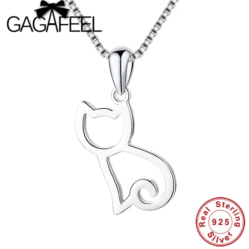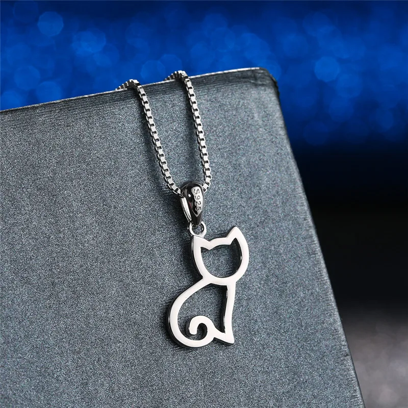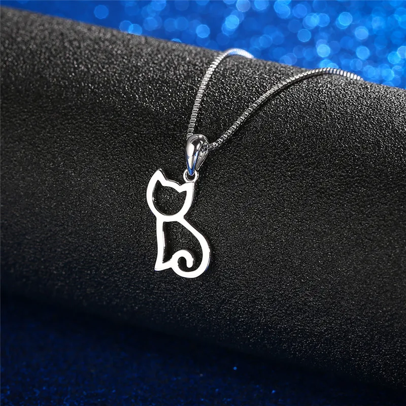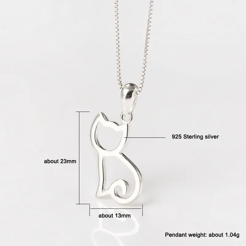 style 1:925 Sterling Silver Cat Pendant Necklaces