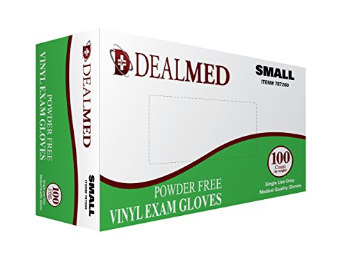 Disposable Vinyl Exam Gloves Powder Free, 100 Per Box Size Small