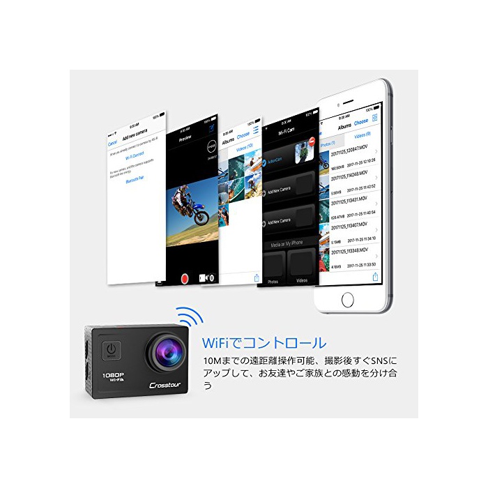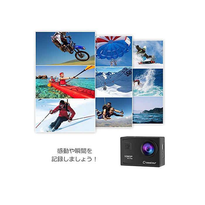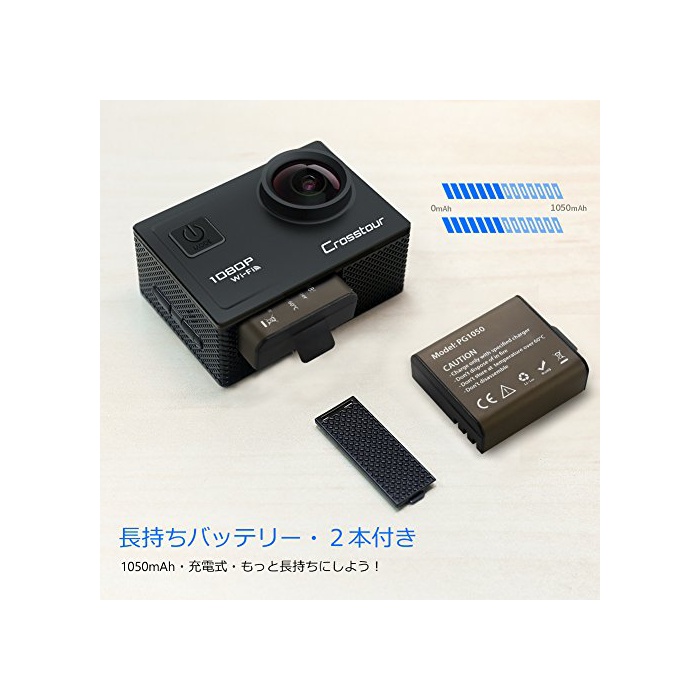 원본상품명: Crosstour アクションカメラ WiFi搭載 1080PフルHD高質 1200万素 30M防水 ウェアラブルカメラ 2インチ液晶面 170度角レンズ 1050mAhバッテリ2個 バイク