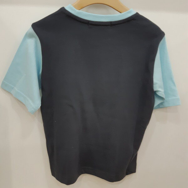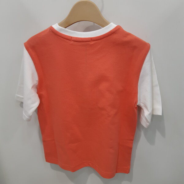 절개배색이 포인트고 로고프린트가있는5부 소매기장 티셔츠