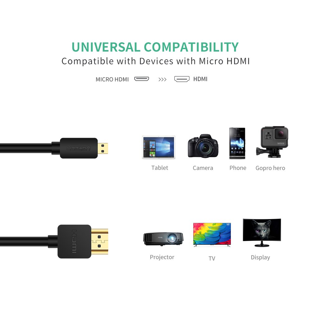 Ugreen 30103 Micro HDMI (Type D) to HDMI (Type A) conversion High speed cable 2 m × 1, black