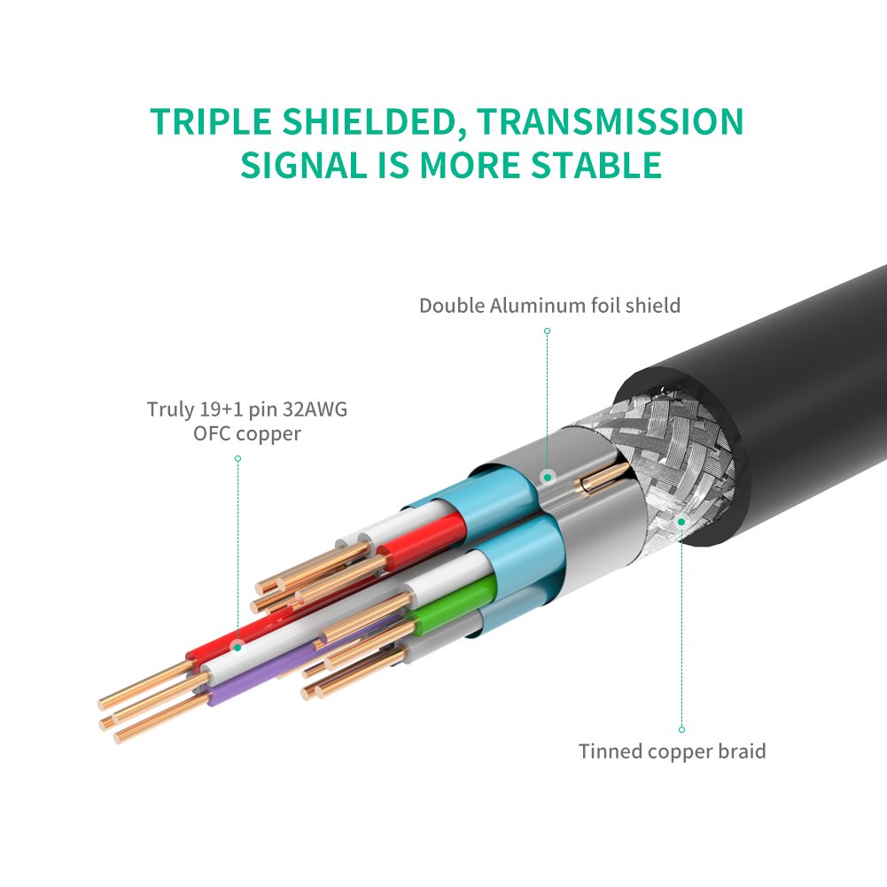The Ugreen high-speed HDMI cable can transfer signals such as one-cable solution for high-speed media transfer with Ethernet, movies, photos, data, home entertainment network, etc.