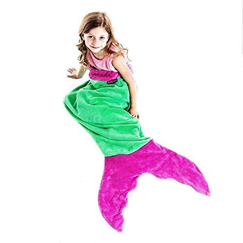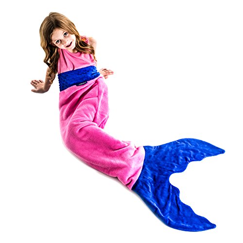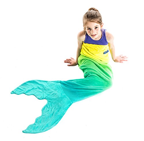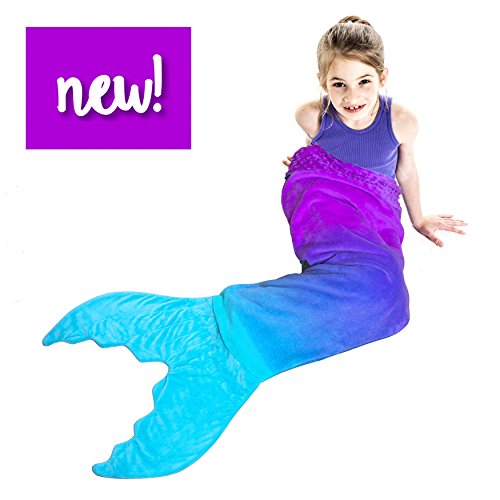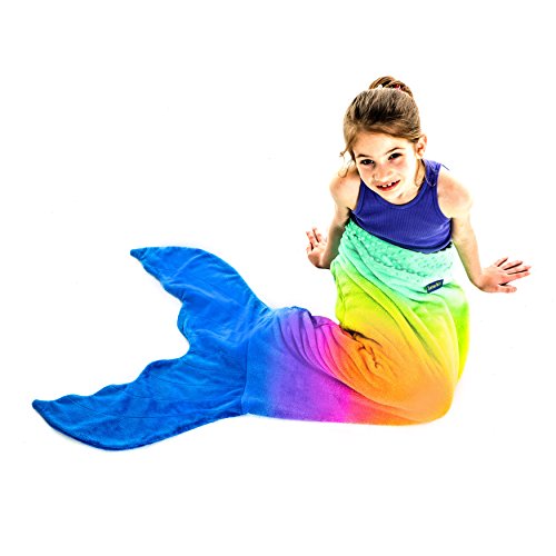 Climb inside the colorful-coziness of Blankie Tails Ombre Blankie Tails®! The Ombre Blankie Tails® is made with premium grade, super soft, double sided minky fleece with minky dot embellishments around the top. The gorgeously sewn tail, which you can slide your feet into, and the cascading colors will make your little one feel like a real mermaid. Winner of The Parents' Choice Award, Blankie Tails® Kid Size mermaid blankets measure 24 inches across ( 2 feet), and 56 inches in length (just over 4 and 1/2 feet) in length, and fit most mermaids ages 3-12 years old. Blankie Tails® are perfect for movie nights, sleepover, camping, road trips and just hanging out with friends and family. As the creator of The Original Mermaid BlanketTM, Blankie Tails® prides it's self of using only the best materials and quality construction. Make sure to check out our Adult/Teen size Blankie Tails® Mermaid Tail Blankets and Blankie Tails® Shark Blankets. Makes a great gift!Feature