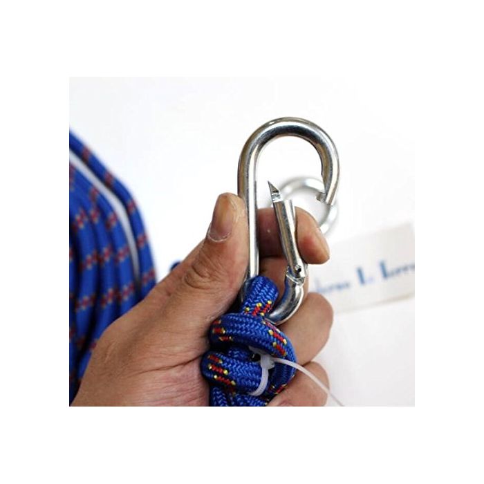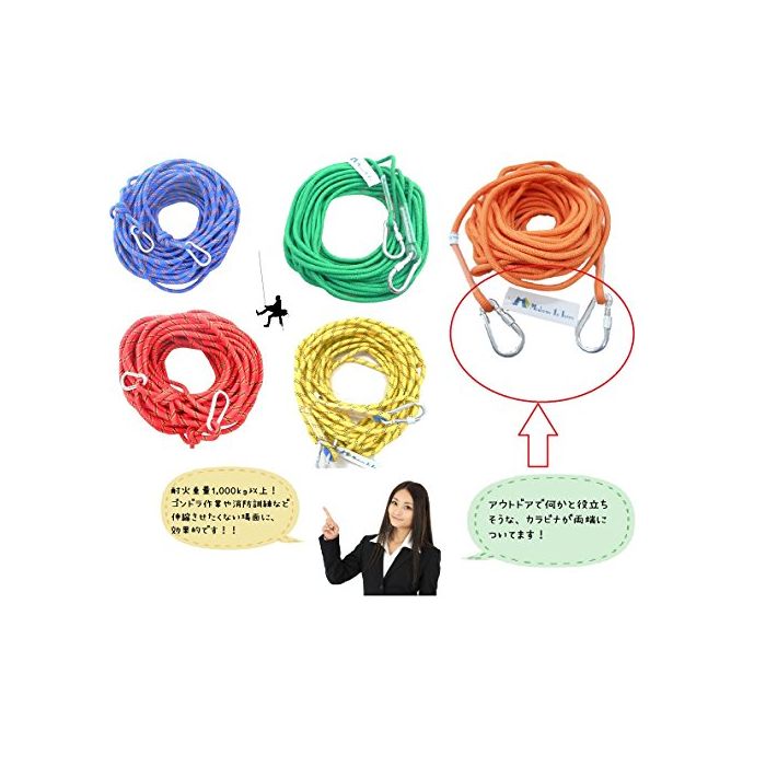 ※등산 rock-climbing용의 신체 보호 목적은 아니고, 범용 로프로서 판매 하고 있기 때문에 양해해 주십시오.또한이와카도 등의 예각상 또는 이것에 비슷하는 물체에 강도의 충격을 가져 충돌 했을 때에는,절단하는 일이 있기 때문에 주의해 주십시오.카라비너도 양단에 부속.