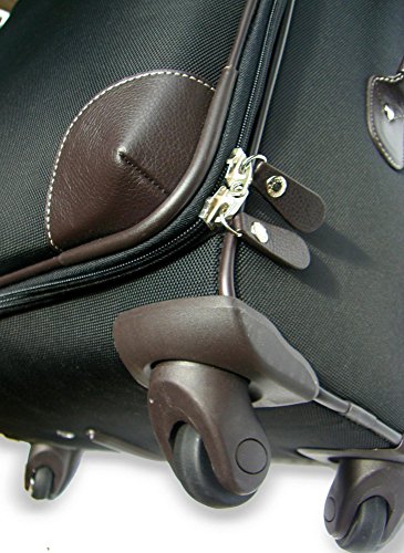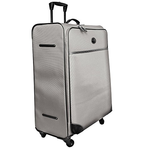 -. Feature : Ultra light 30 inch large check in spinner features 1 interior organizational pocket & 1 large exterior zippered pocket. Weighs 8.1 lbs. / Vegan leather trim, handles and design details. Hang tag included. Packs for 5-10 days. / Exterior made of poly-coated nylon with water-resistant treatment. Multistage pull up handle w comfort-grip handle. / 5 Year Limited Manufacturer's Warranty / 19x12.5x30